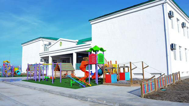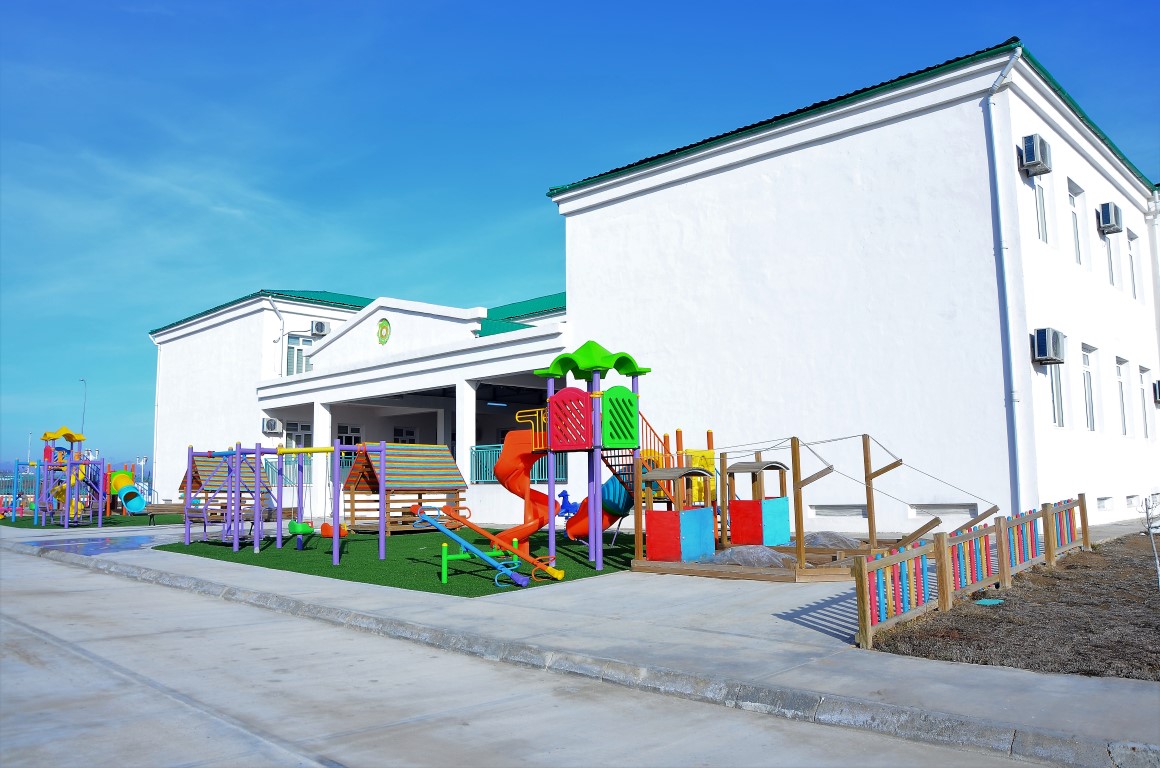 Anew İlçesi 280 Kişilik Çocuk kompleksi ( Kreş, spor alanları, eğitim alanları, açık-kapalı oyun alanları…)Anew/Ahal Vilayeti / Türkmenistan / 2012-2014
